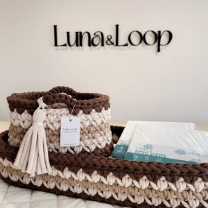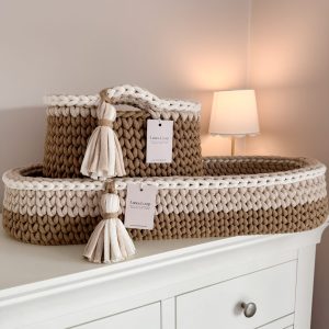 Crochet Changing Basket & Nappy Caddy Bundle – Brown & Beige