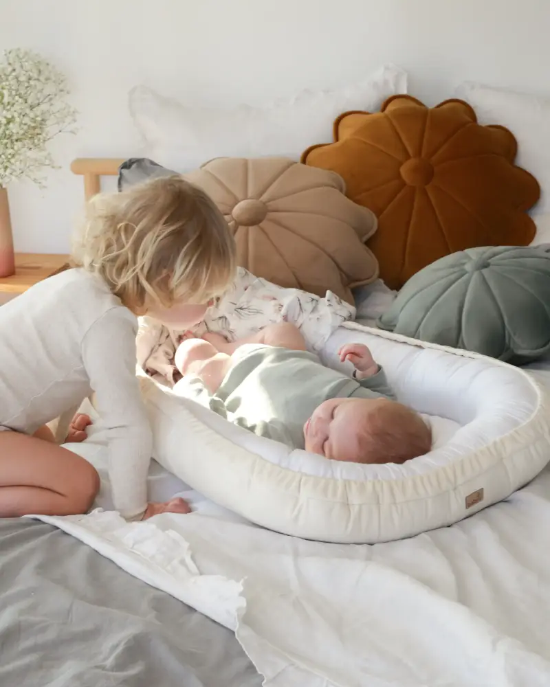 The Babyly Velvet Babynest is a beautifully handcrafted piece designed to offer your baby a soft, supportive, and secure resting space from day one. Whether used in a crib, on the sofa, in the parents’ bed, or even outdoors on a terrace during warmer days, this versatile nest creates a familiar environment that promotes comfort and well-being.