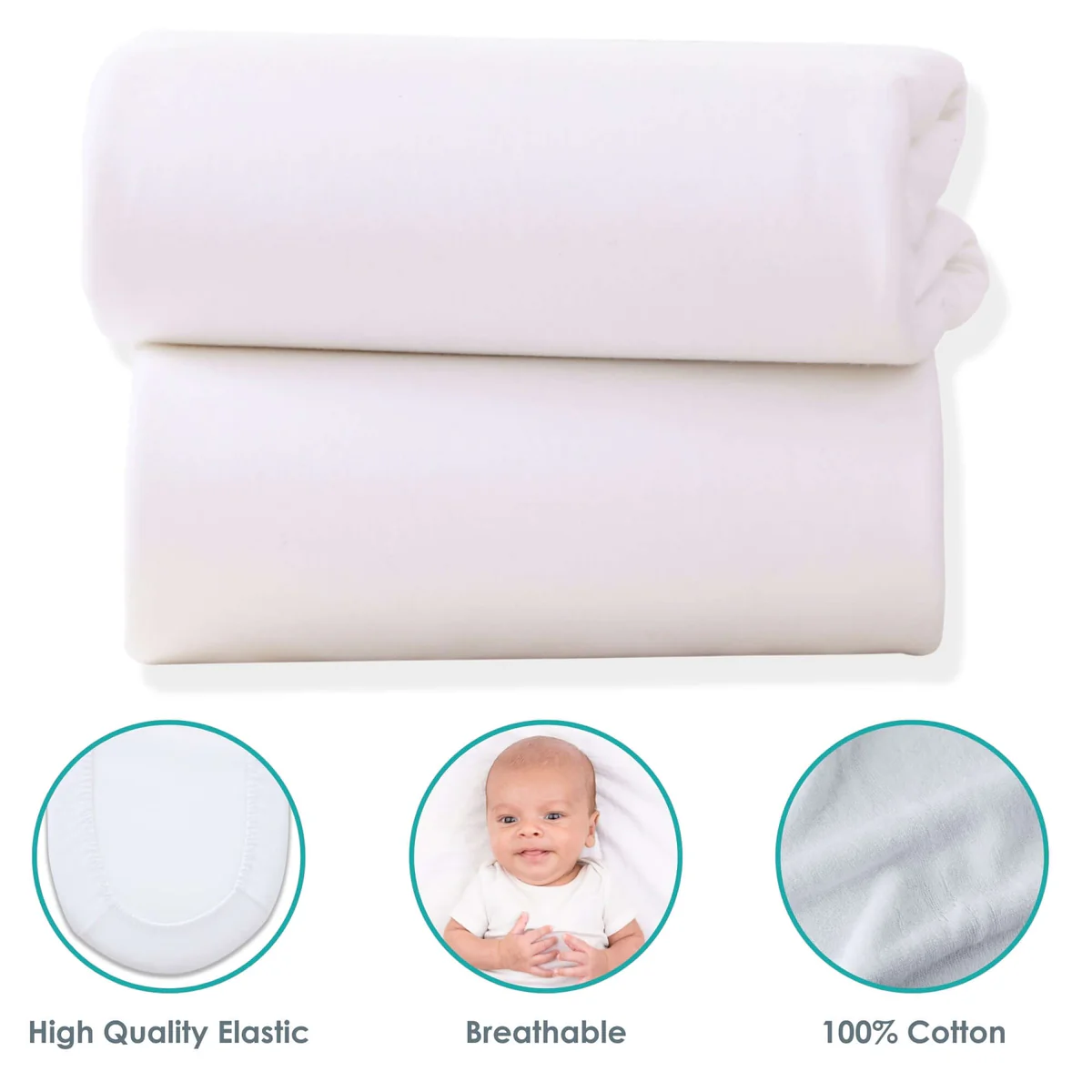 About Clair De Lune Fitted Moses Basket Sheets – 2 Pack White