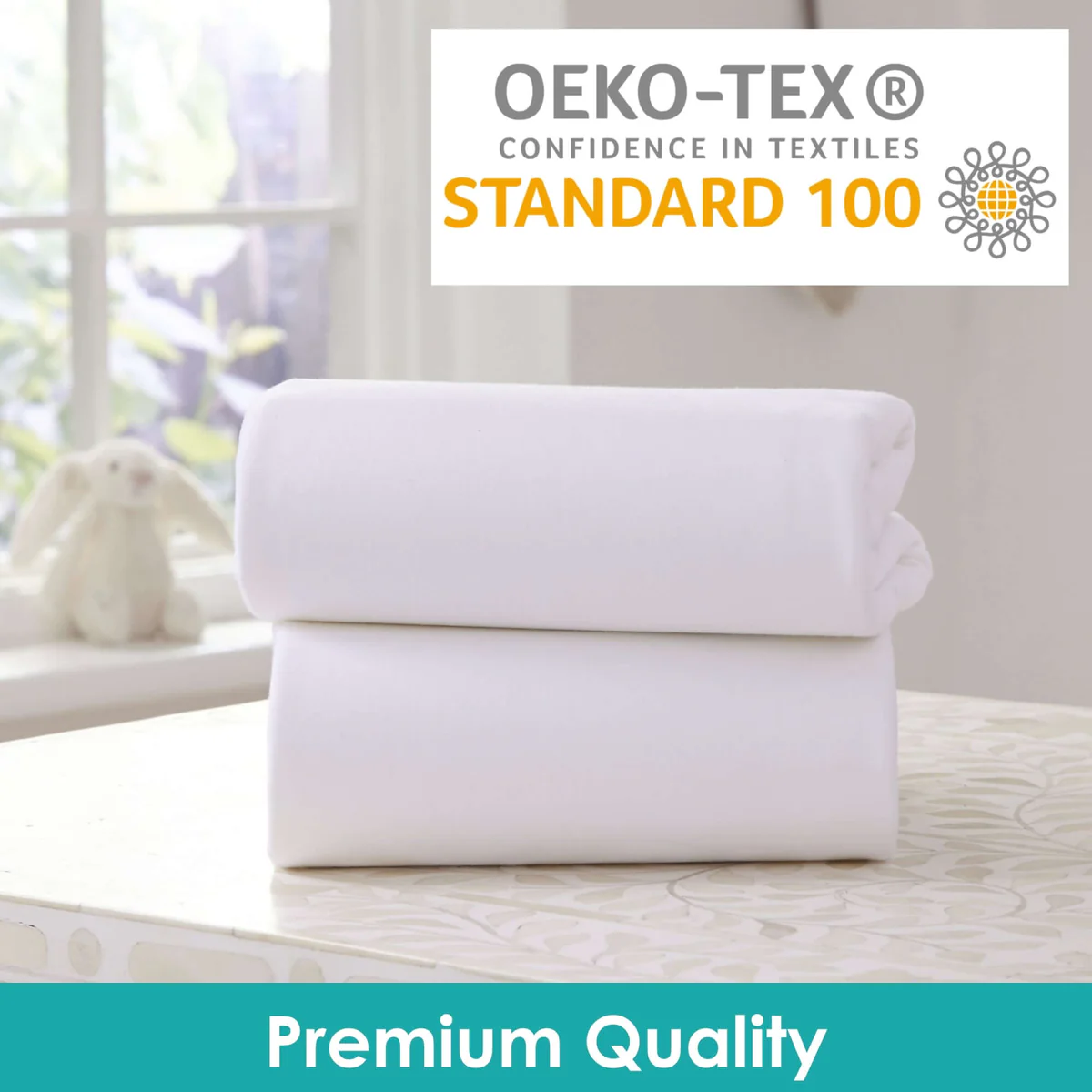 The fitted sheets are made from super-soft cotton jersey. They have an elasticated edge so you can easily stretch and fit over any of our Moses Basket mattresses.