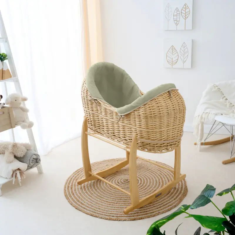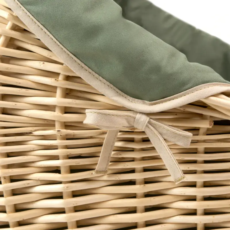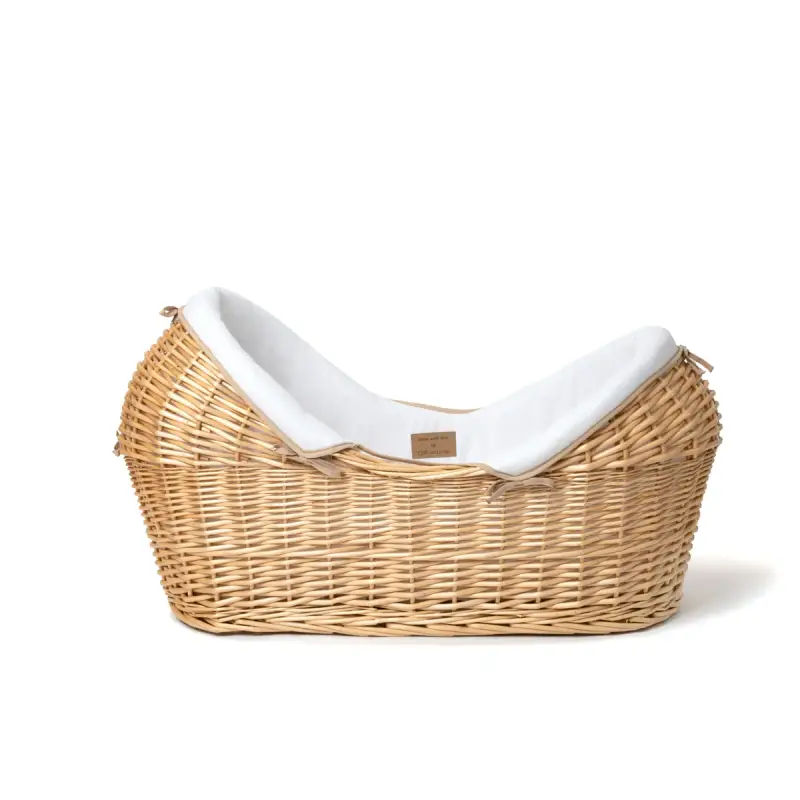 This premium, award-winning, adaptation of a traditional Moses basket is hand-woven from sturdy willow wicker and hand-dressed by our wonderful team in our Sedex-certified British factory. The luxury organic dressing features a sewn-in padded lining which protects the wicker basket internally and externally, for both baby and carrier comfort.