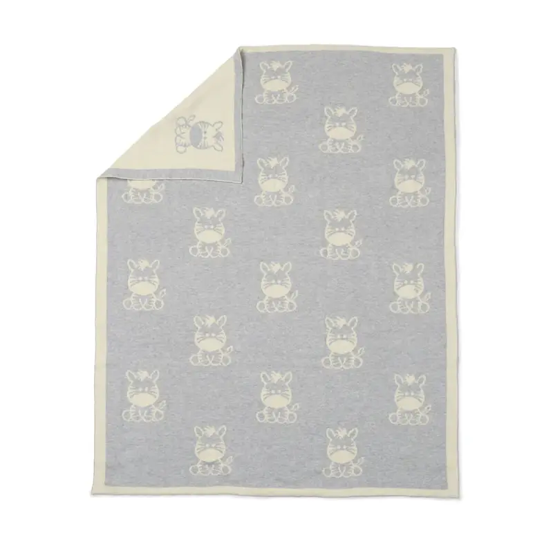Adorable Zebra Design: Adorned with an adorable zebra character, this knitted blanket adds a touch of whimsy and playfulness to your baby’s space. The charming design captivates the imagination and brings a delightful safari-inspired vibe to the nursery.