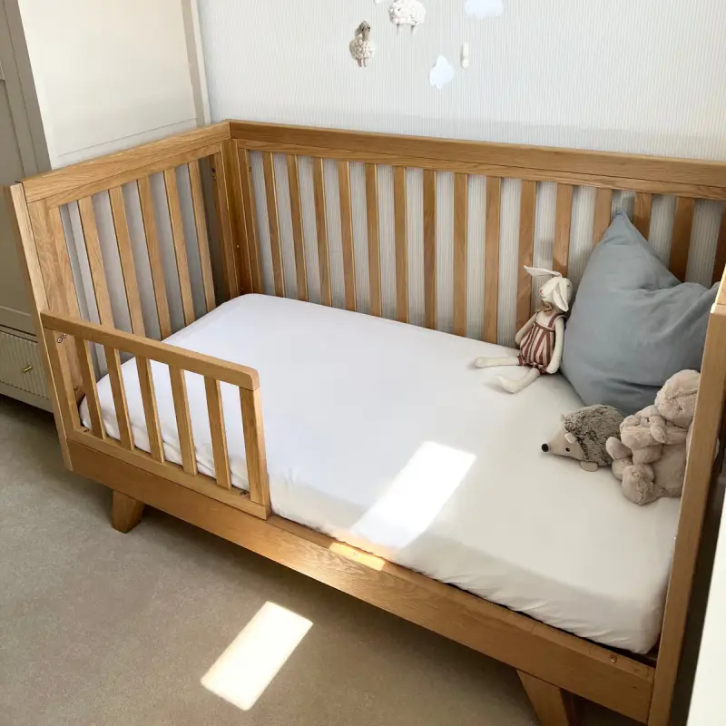 Elevate your nursery with the timeless allure and enduring strength of the Clair de Lune Oak Cot Bed – where exquisite craftsmanship meets functionality.