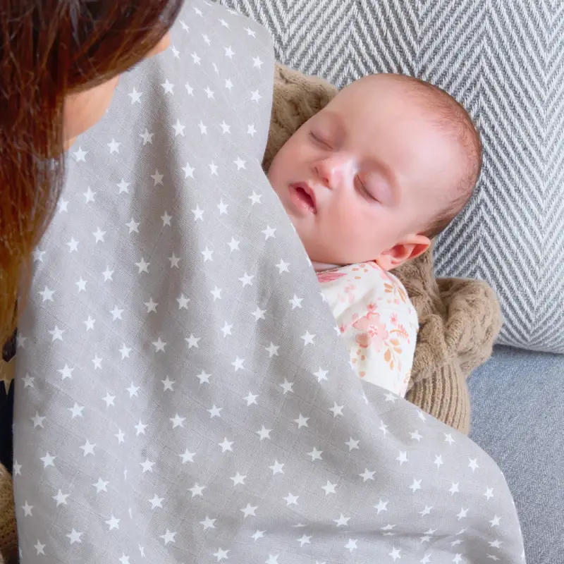 Stylish Star Design – Includes three muslins in a grey and white star print for a timeless, unisex look.