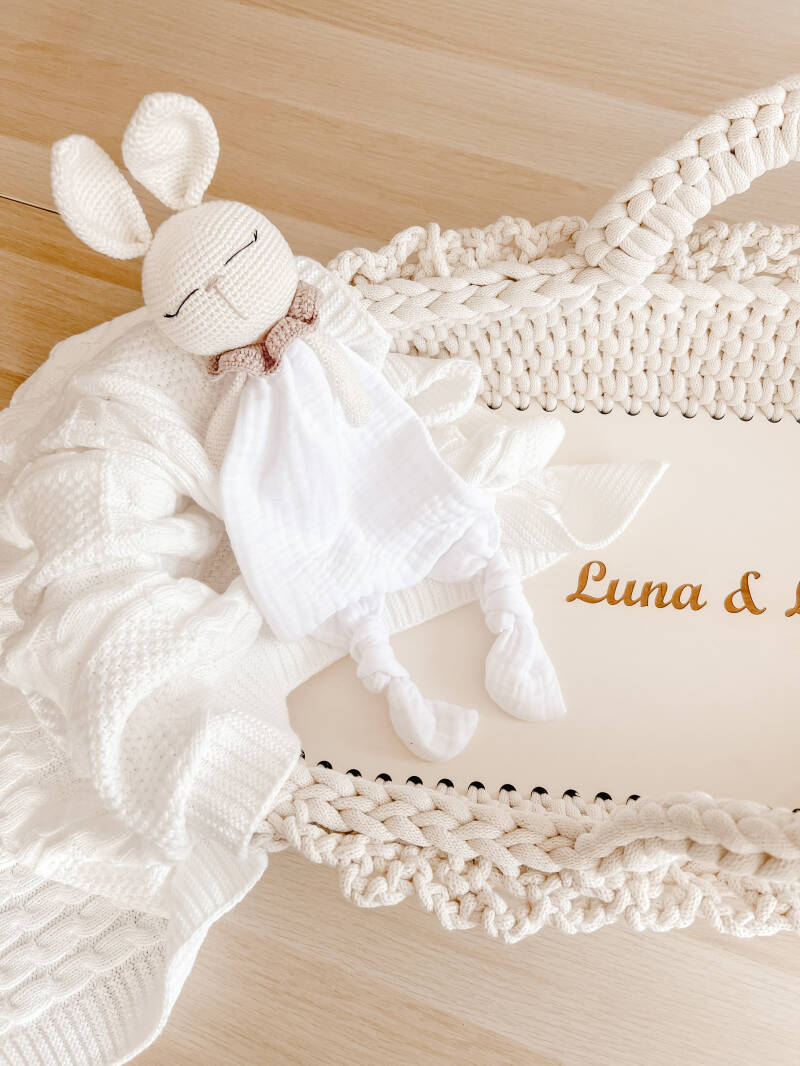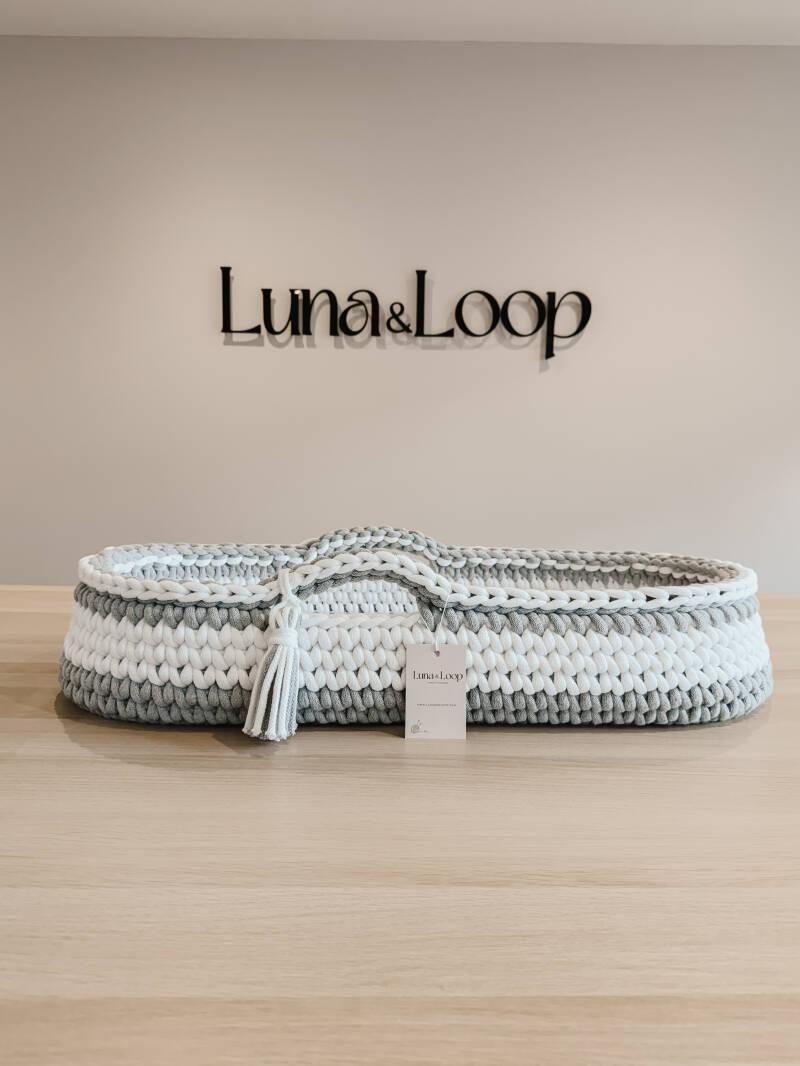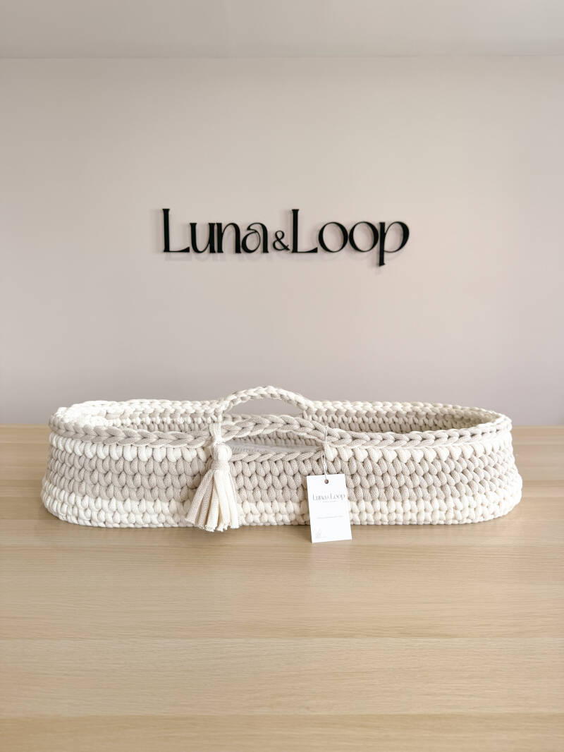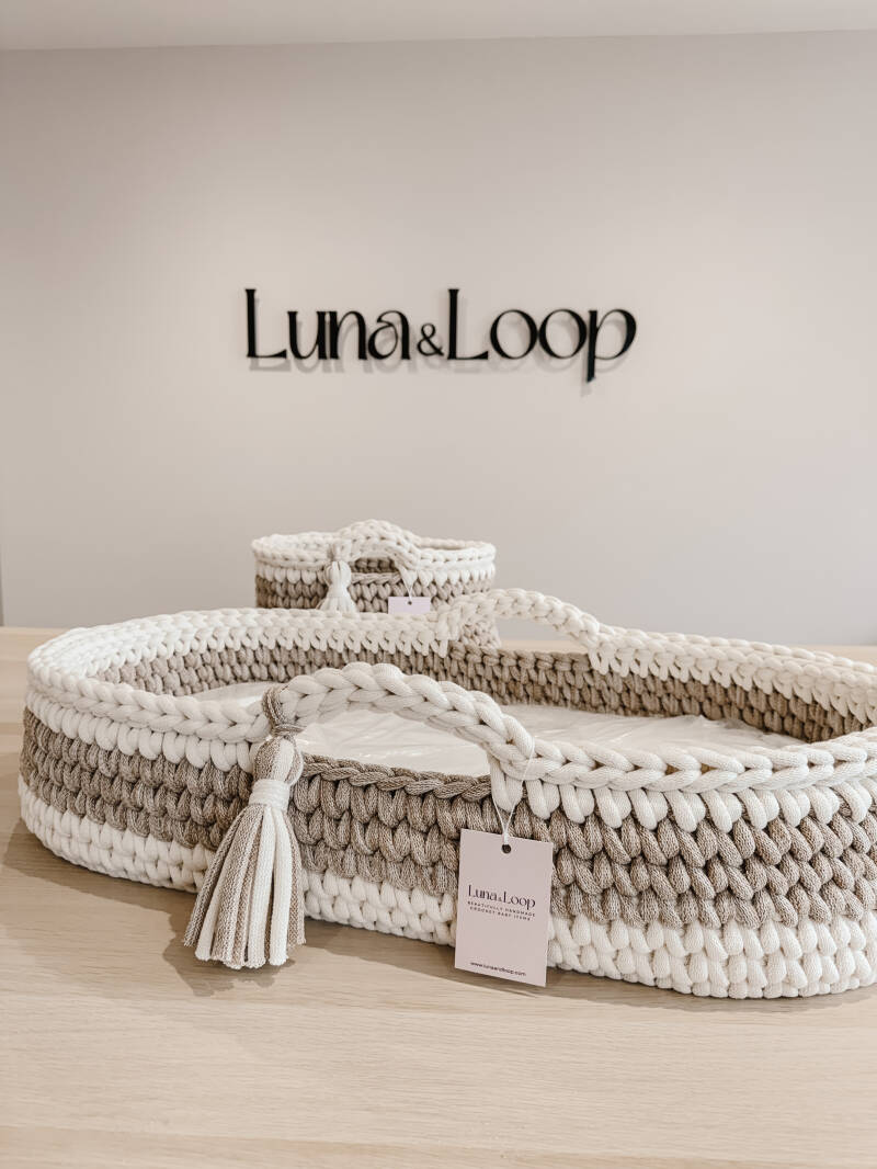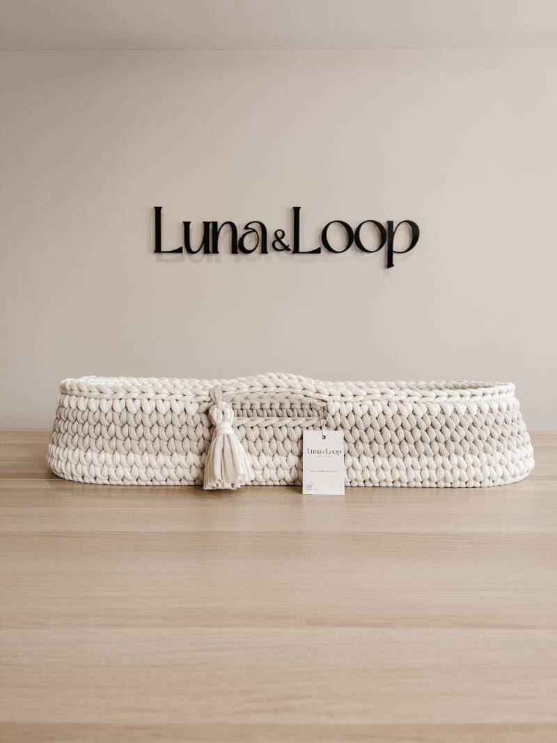 Welcome your little one into the world with our beautifully handcrafted Crochet Changing Basket, made from soft, natural recycled cotton yarn. Thoughtfully designed to offer a cosy and safe space for your newborn, it’s a charming blend of traditional craftsmanship and modern sustainability. Certified by OEKO-TEX® Standard 100, you can rest assured no harmful substances have been used in the production or dyeing of the cotton – only the gentlest materials for your baby’s skin.