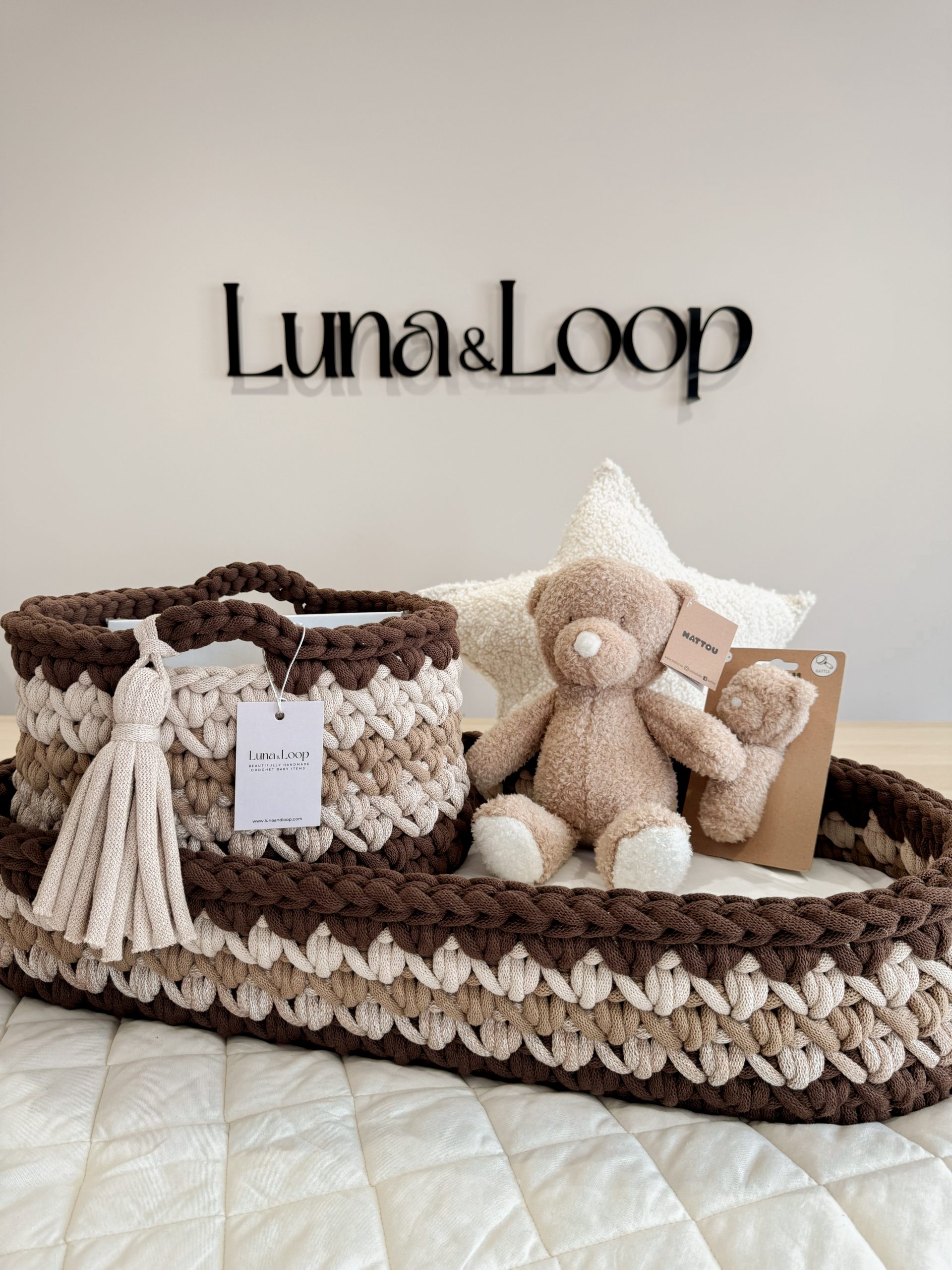 Welcome your little one into the world with our beautifully handcrafted Crochet Changing Basket, made from soft, natural recycled cotton yarn. Thoughtfully designed to offer a cosy and safe space for your newborn, it’s a charming blend of traditional craftsmanship and modern sustainability. Certified by OEKO-TEX® Standard 100, you can rest assured no harmful substances have been used in the production or dyeing of the cotton – only the gentlest materials for your baby’s skin.