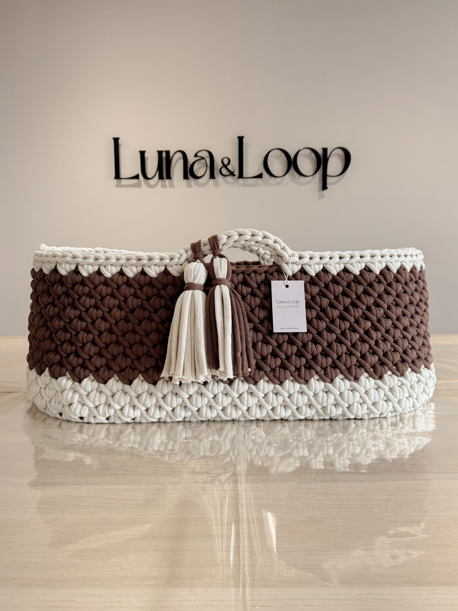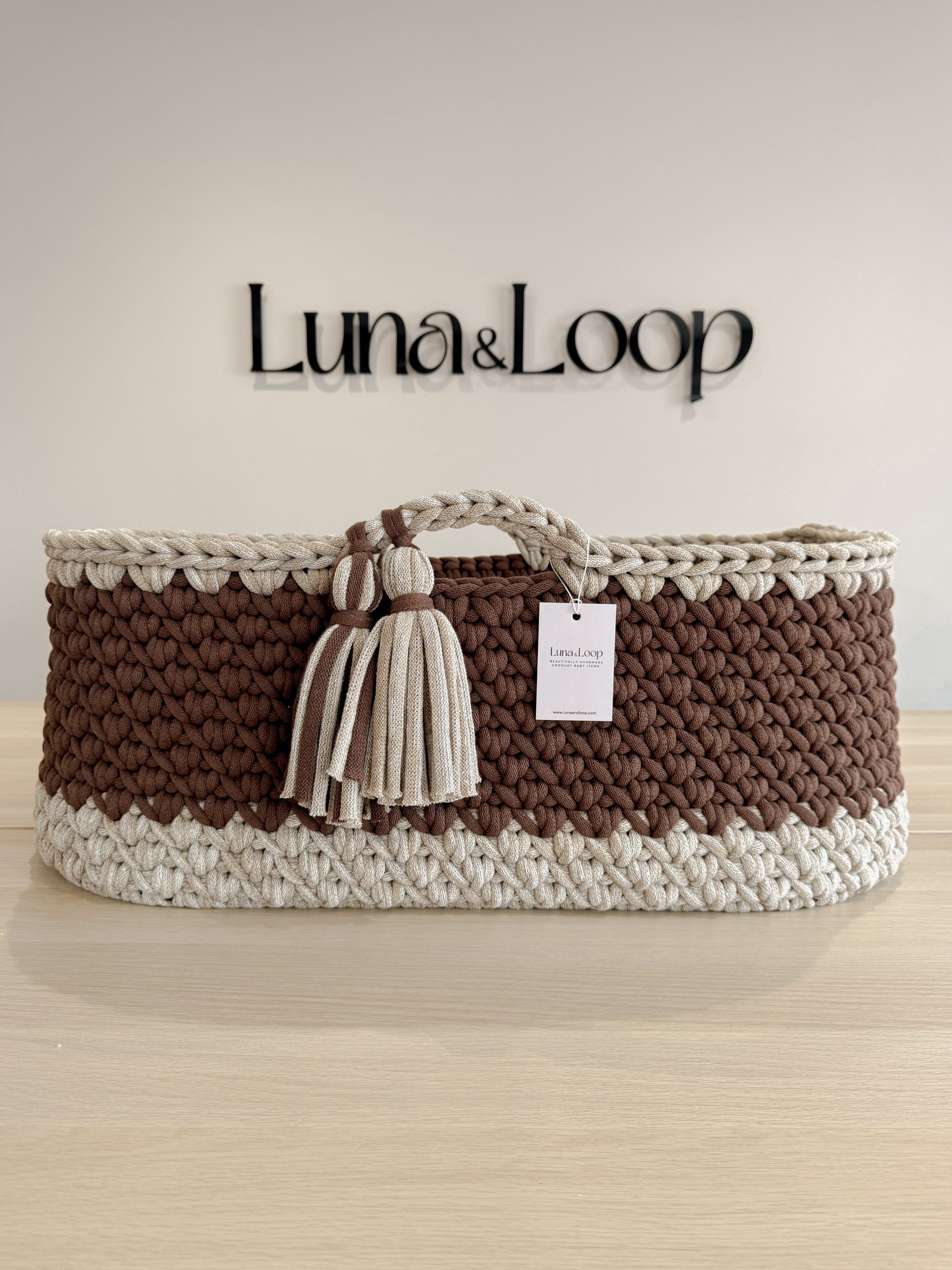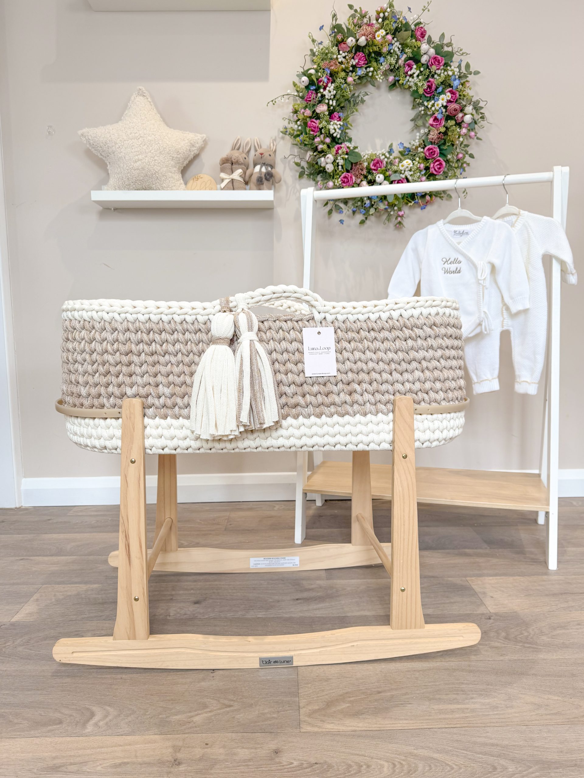 Welcome your little one into the world with our beautifully handcrafted Crochet Moses basket, made from soft, natural recycled cotton yarn. Thoughtfully designed to offer a cosy and safe space for your newborn, it’s a charming blend of traditional craftsmanship and modern sustainability. Certified by OEKO-TEX® Standard 100, you can rest assured no harmful substances have been used in the production or dyeing of the cotton – only the gentlest materials for your baby’s skin.