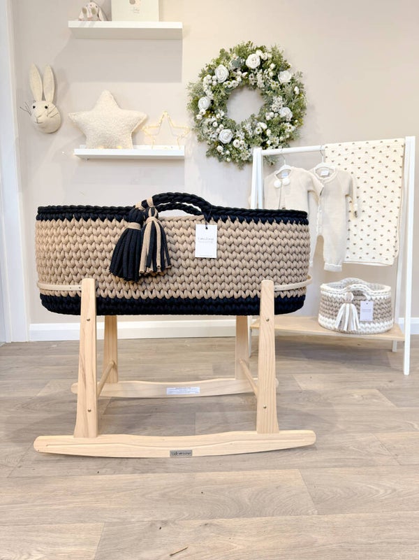 A stylish, sustainable alternative to mass-produced baby gear, this Moses basket is a warm, comforting space for those precious early moments. It’s the perfect choice for parents looking for ethical craftsmanship without compromising on charm or safety.