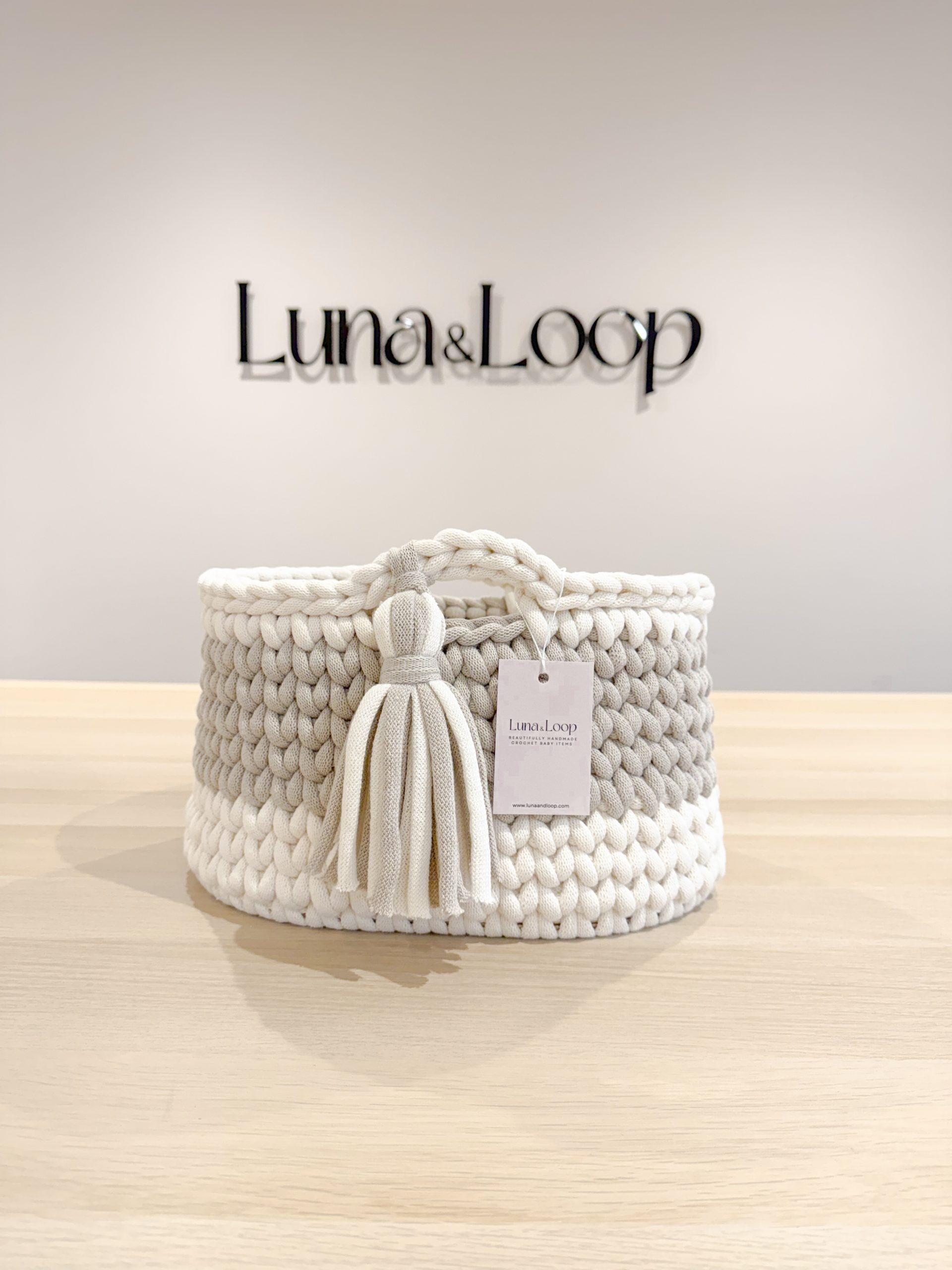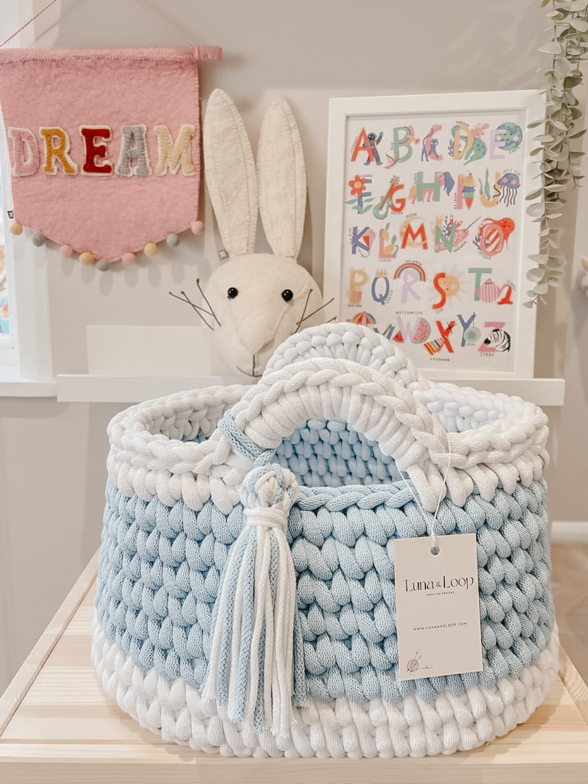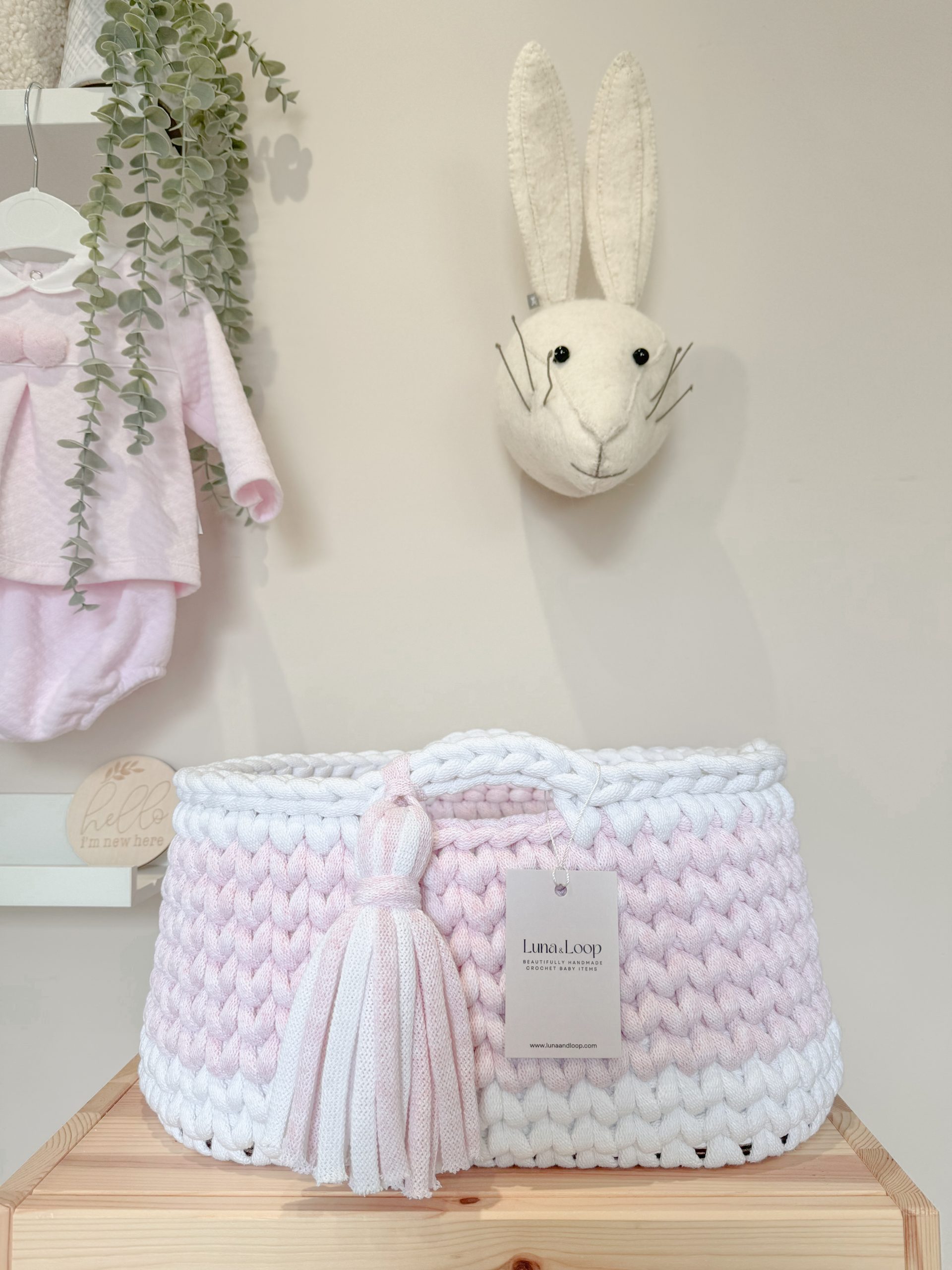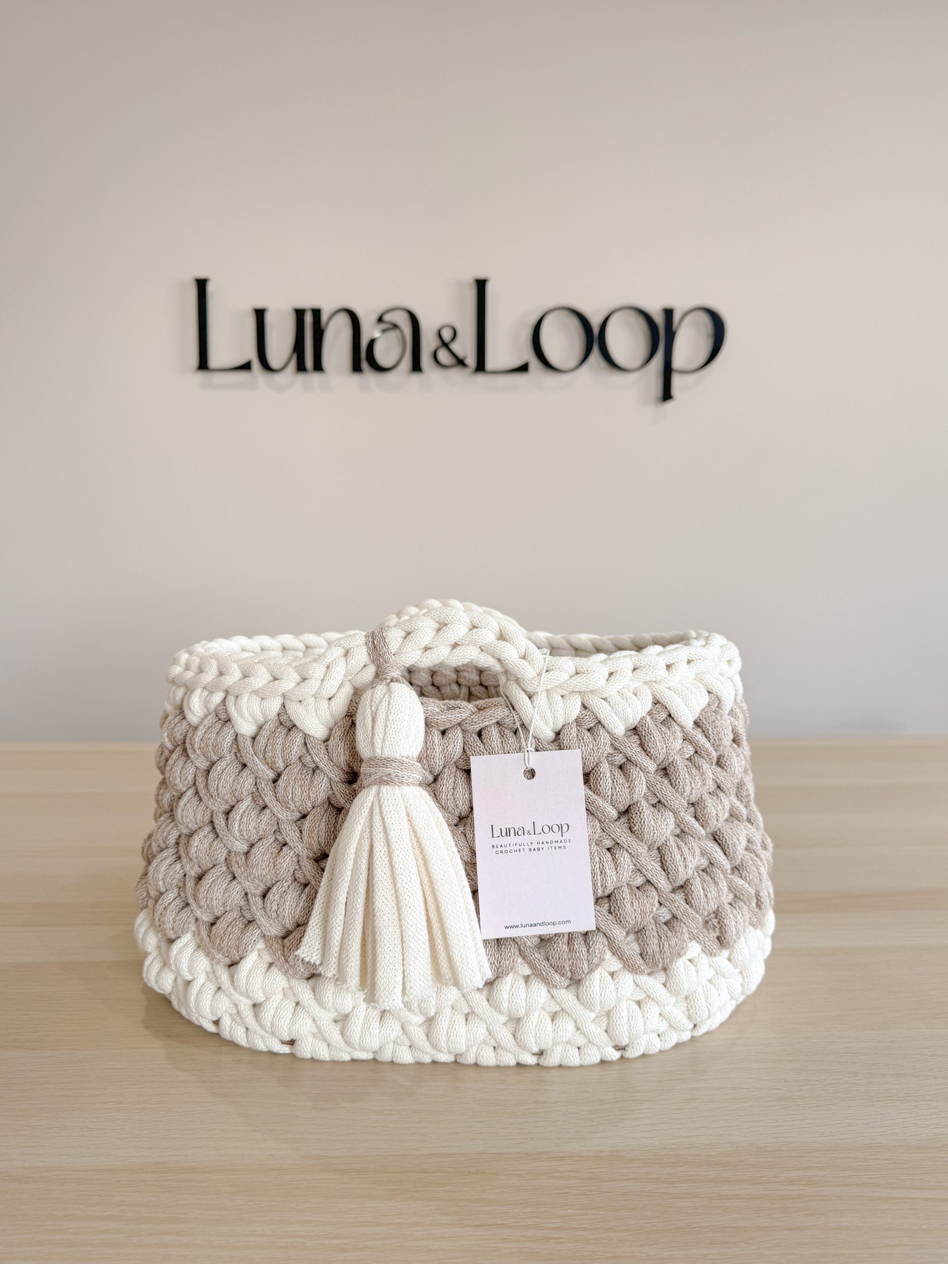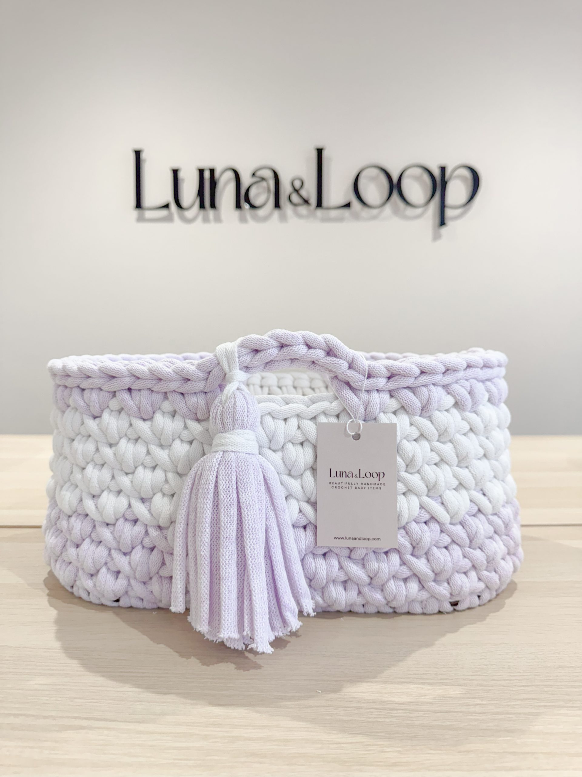 Our Luna & Loop Crochet Nappy Caddy is the perfect way to keep your baby’s essentials beautifully organised — from nappies and wet wipes to muslins, blankets, and comforters.