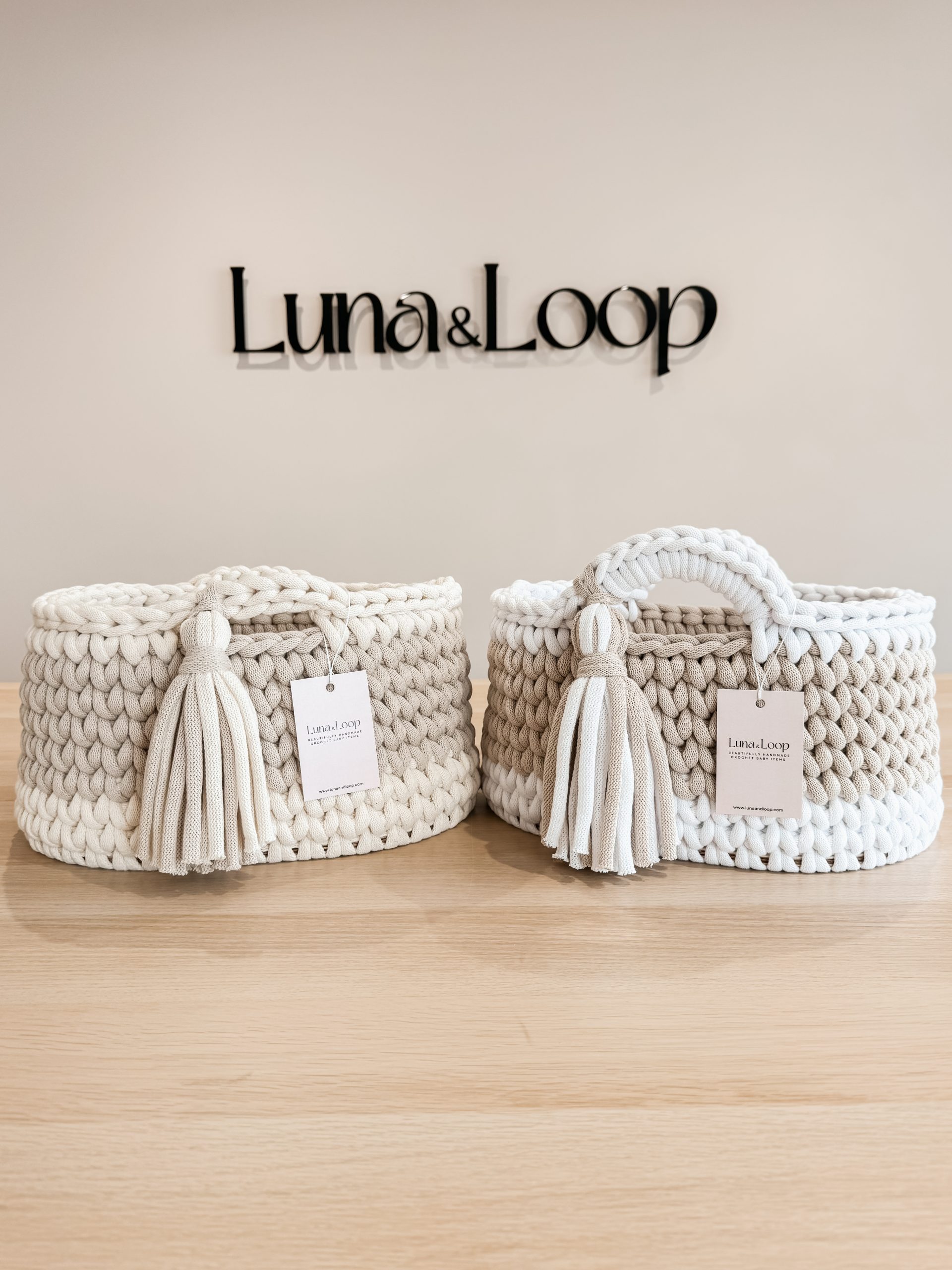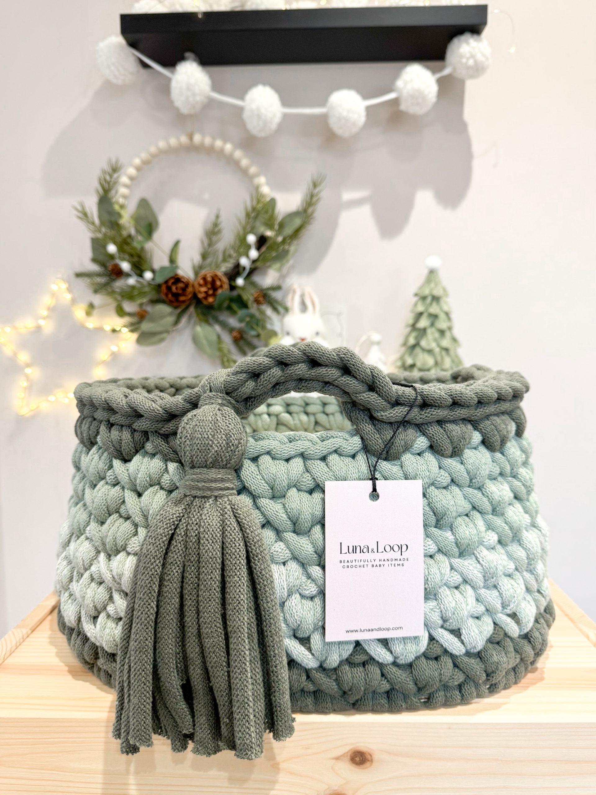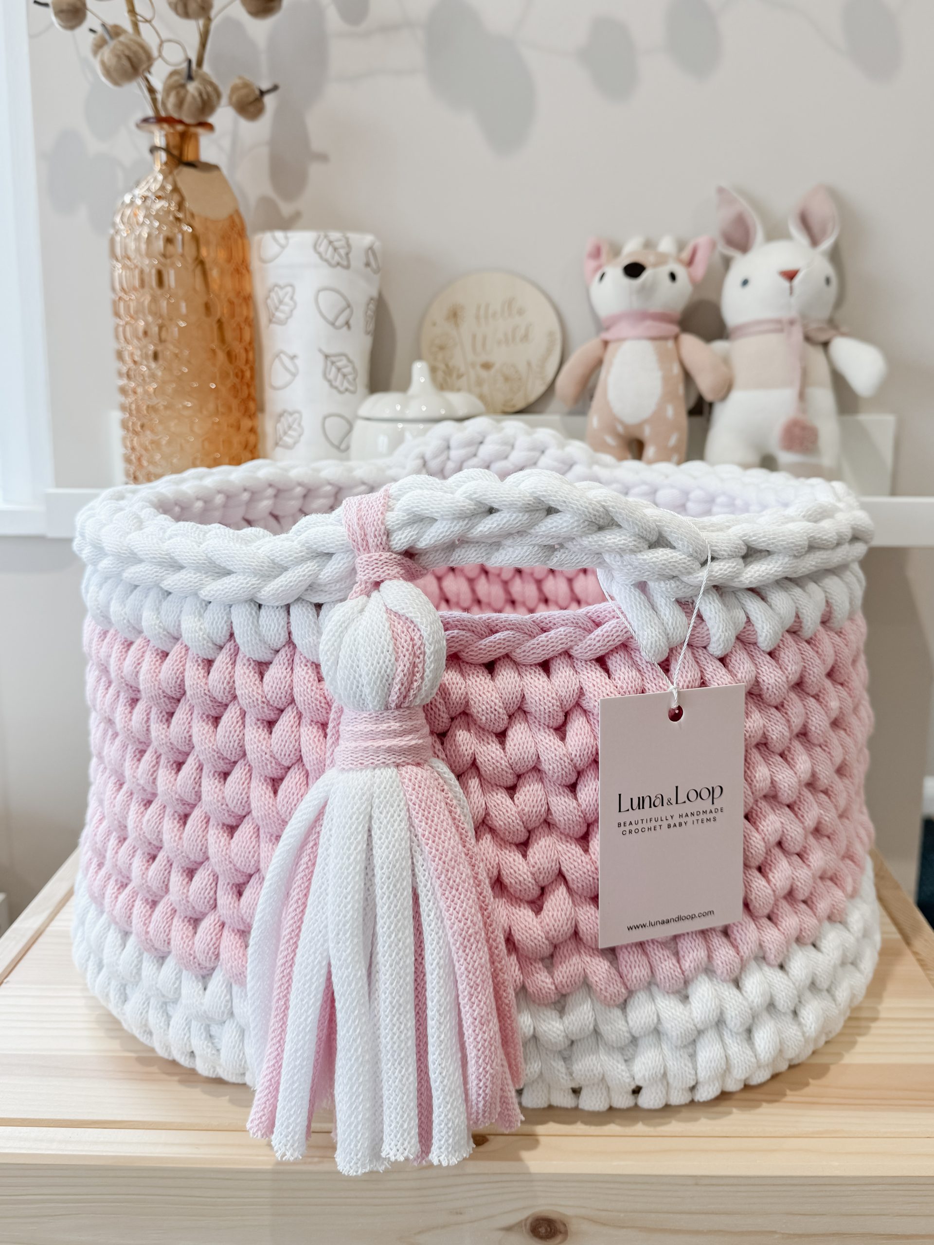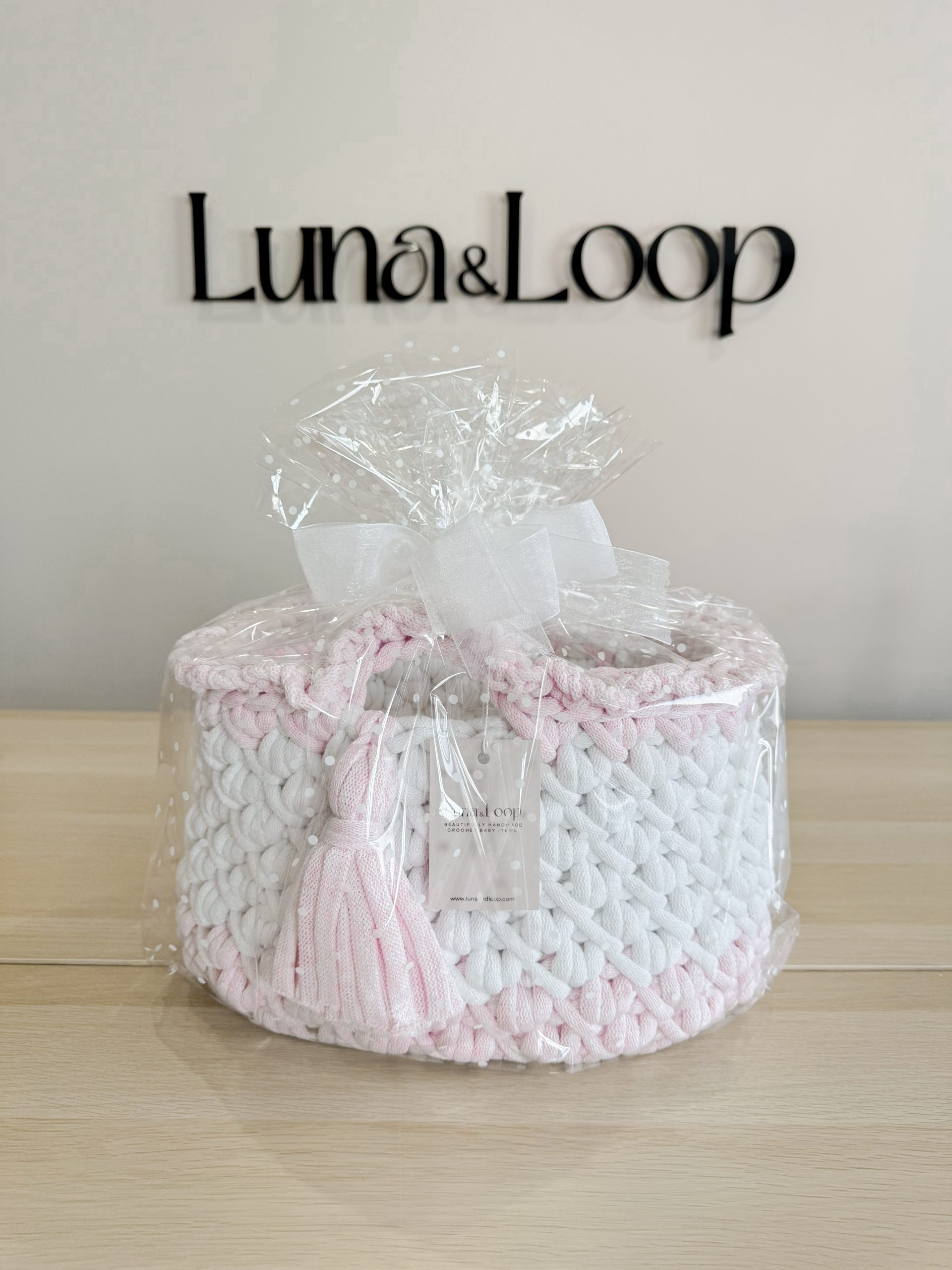 Our Luna & Loop Crochet Nappy Caddy is the perfect way to keep your baby’s essentials beautifully organised — from nappies and wet wipes to muslins, blankets, and comforters.