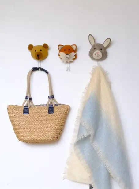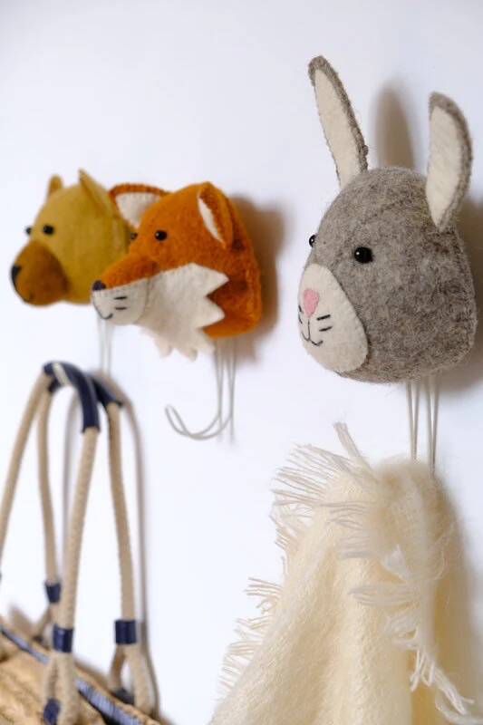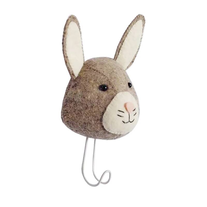 Handcrafted Made from organic woolUse to hang coats, bookbags and moreDimensions: H 25cm W 13cm D 8cm From our Forest Friends Collection. A coat hook to match our Baby Bunny Head. Hang coats, clothes, bags and much more.