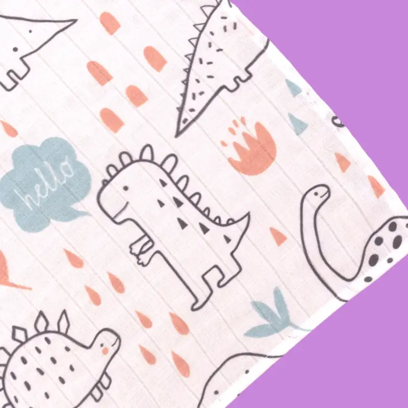About Geople Organic Cotton Muslin Squares – Dinosaur