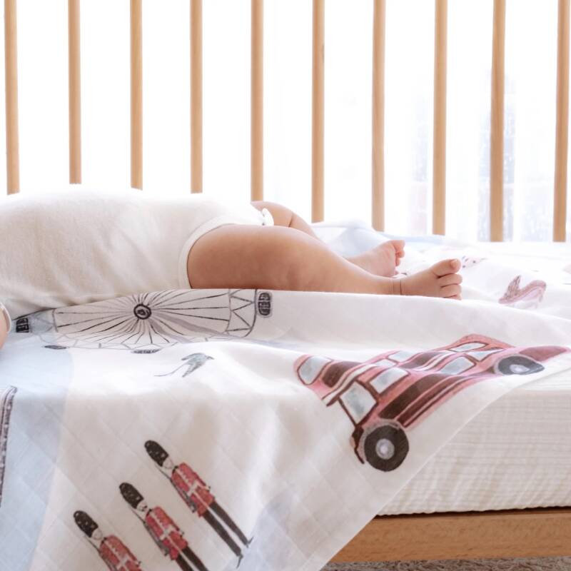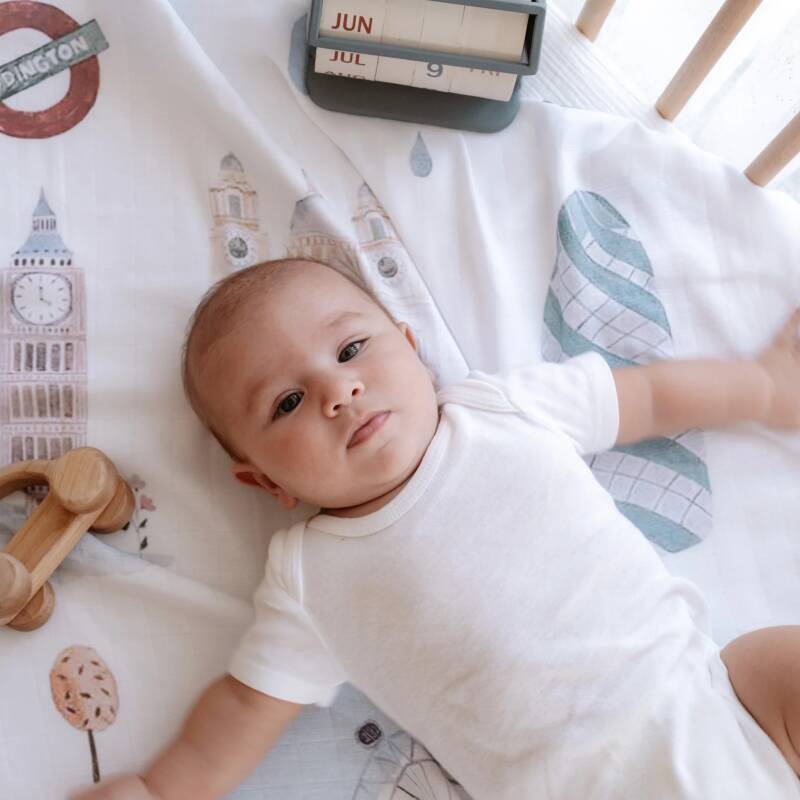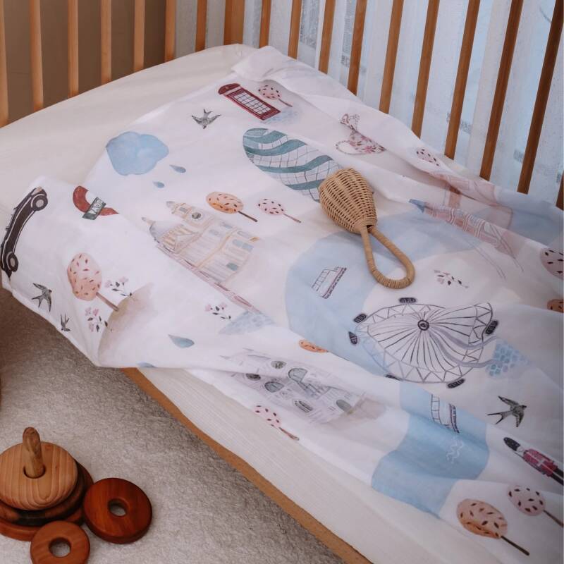 Welcome your little one with the gentle comfort of our “London Print” Muslin Swaddle. Crafted from 100% organic cotton, this soft and breathable blanket is designed with your baby’s delicate skin in mind.