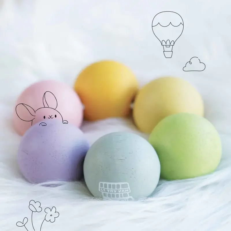 Strung together with a strong elastic cord, the six chunky beads are perfectly sized for little hands to grasp. Decorated in lovely bright colours using chemical free, non toxic, water based stain.