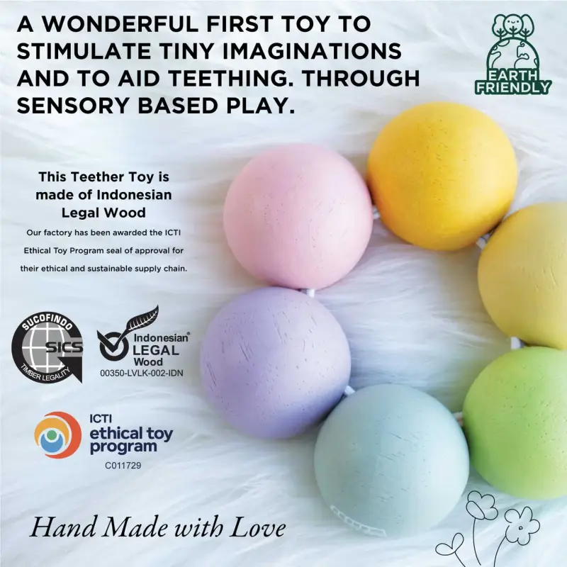 Help to soothe sore gums and aid teething troubles with these sweet wooden teething beads.
