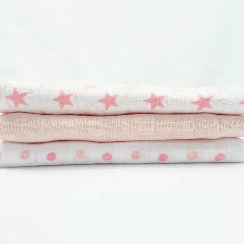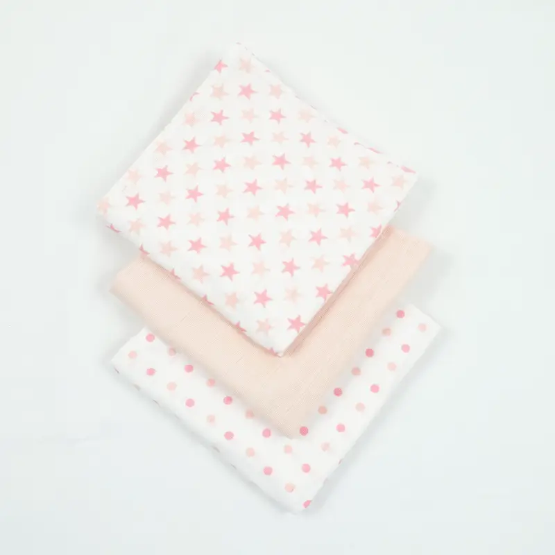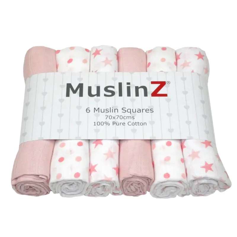 MuslinZ 6 Pack – Pure Cotton Muslin Squares – Pink Stars & Spots