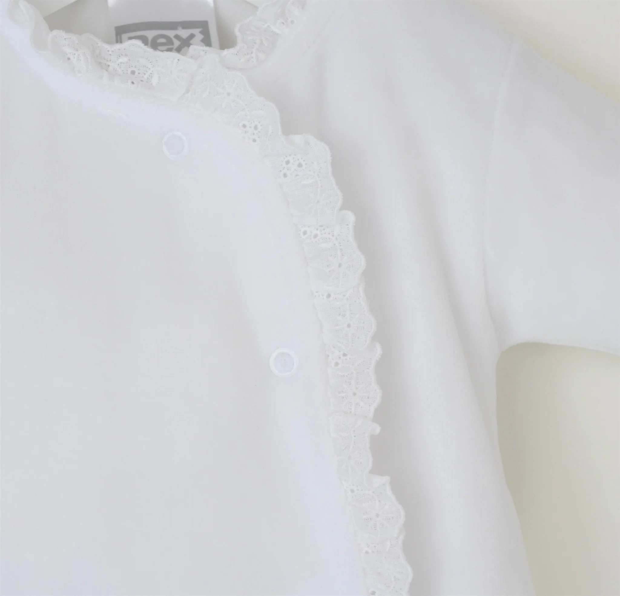 Broderie lace trim around neckline and front
