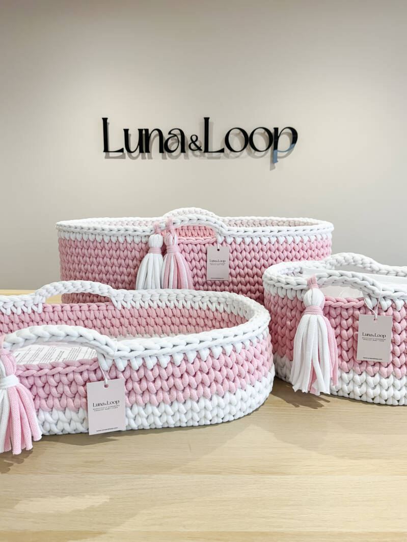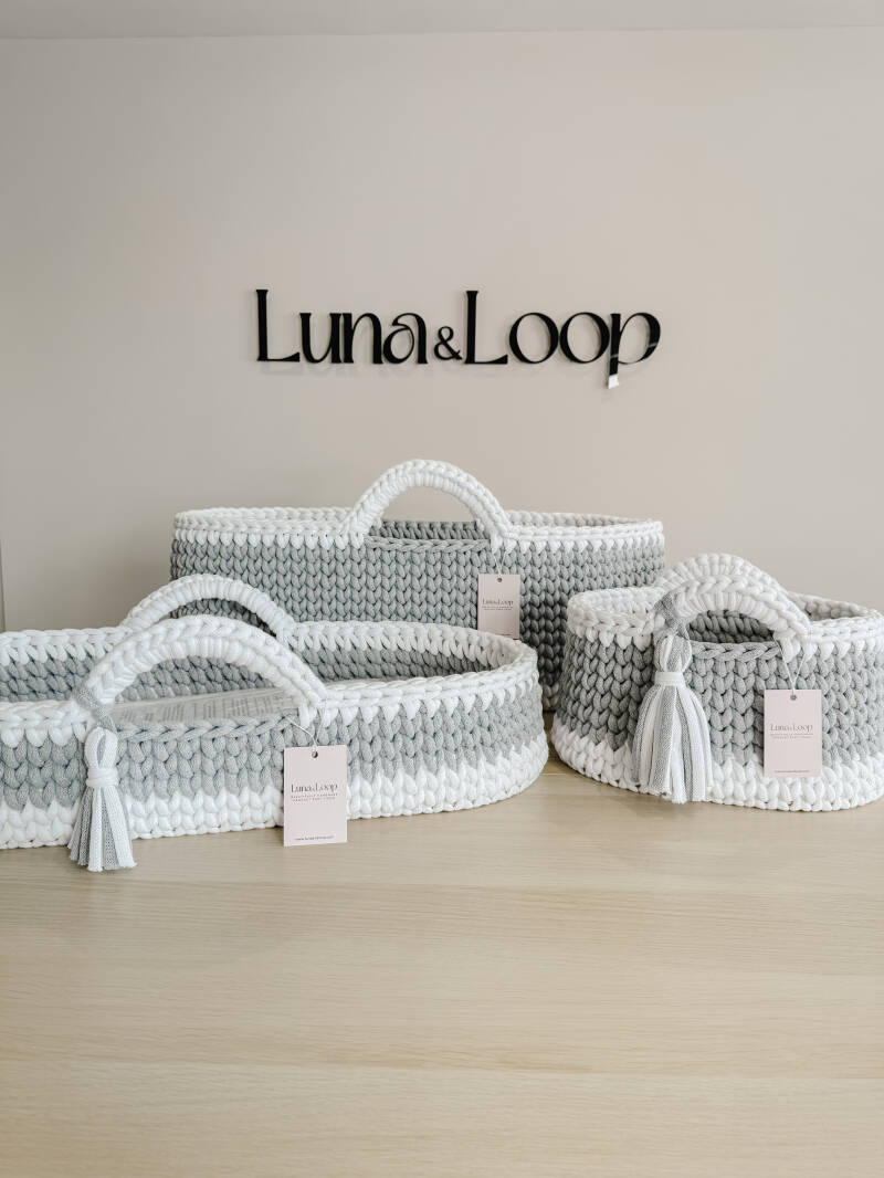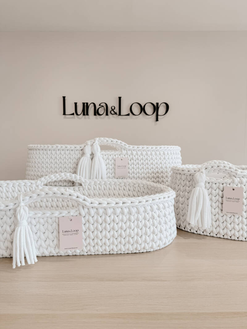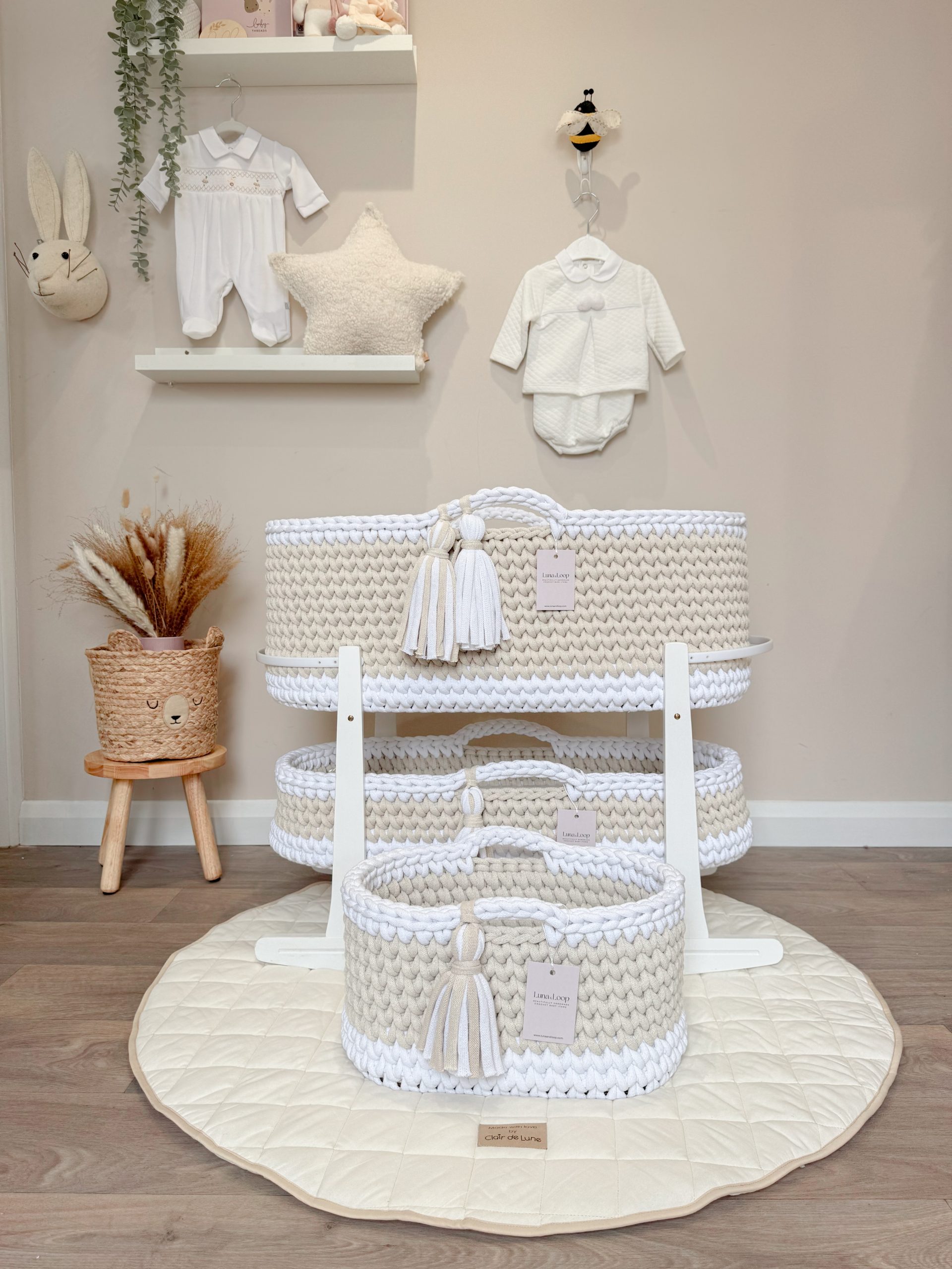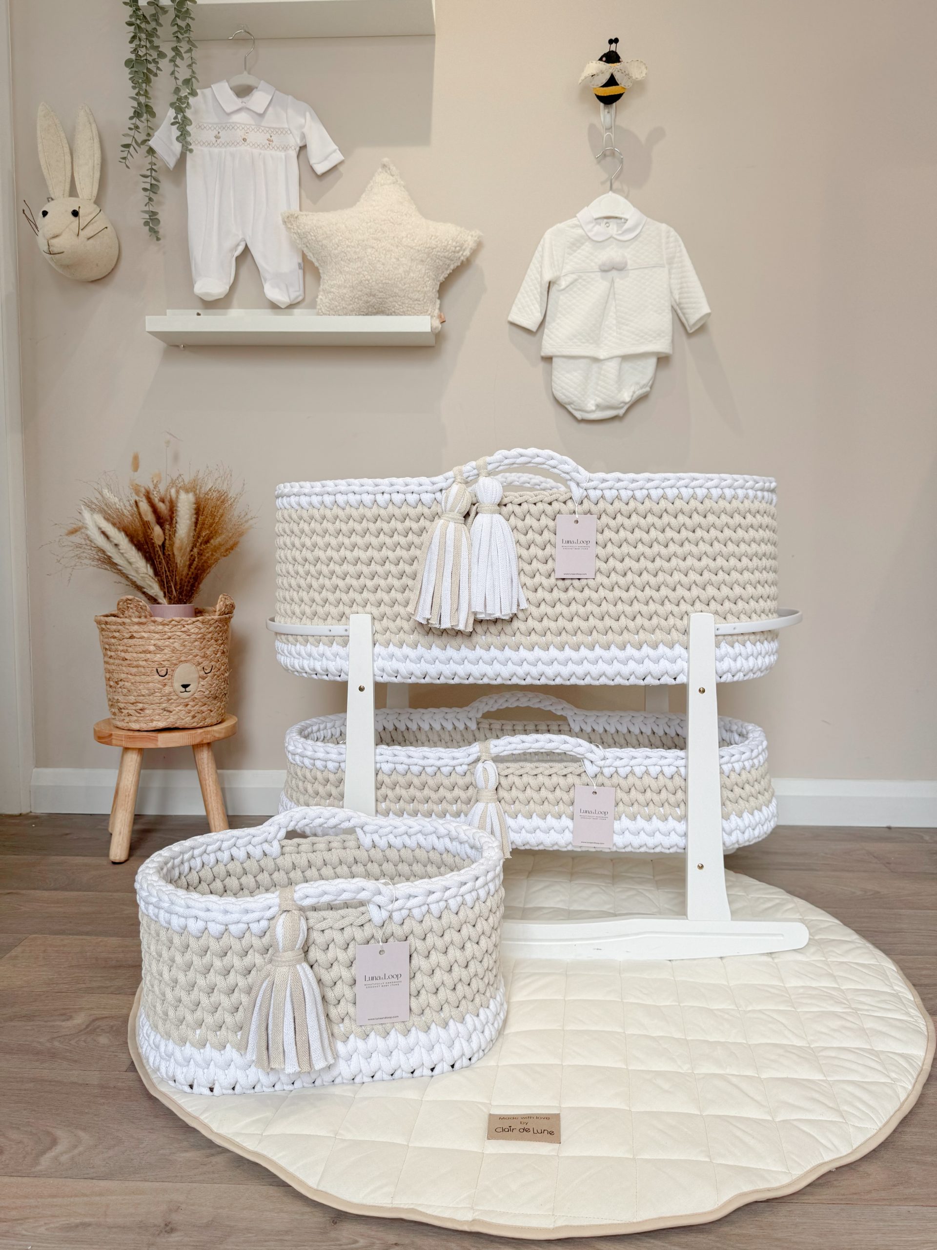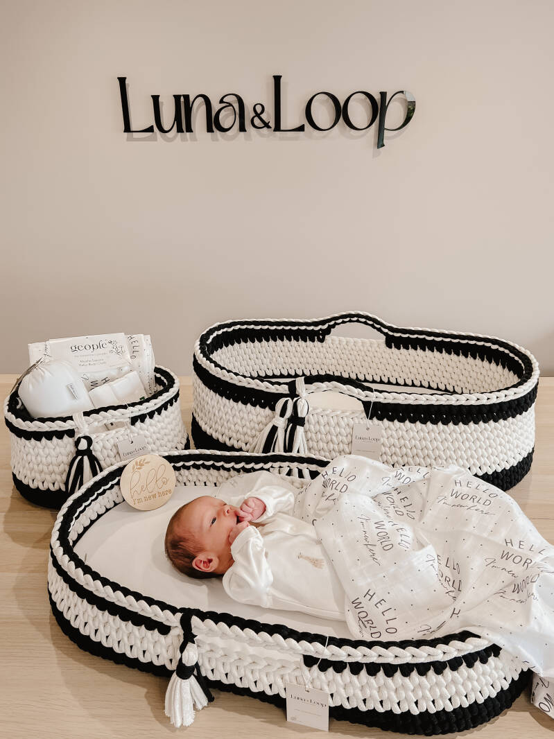 Welcome your little one into the world with our beautifully handcrafted Crochet Moses basket, made from soft, natural recycled cotton yarn. Thoughtfully designed to offer a cosy and safe space for your newborn, it’s a charming blend of traditional craftsmanship and modern sustainability. Certified by OEKO-TEX® Standard 100, you can rest assured no harmful substances have been used in the production or dyeing of the cotton – only the gentlest materials for your baby’s skin.