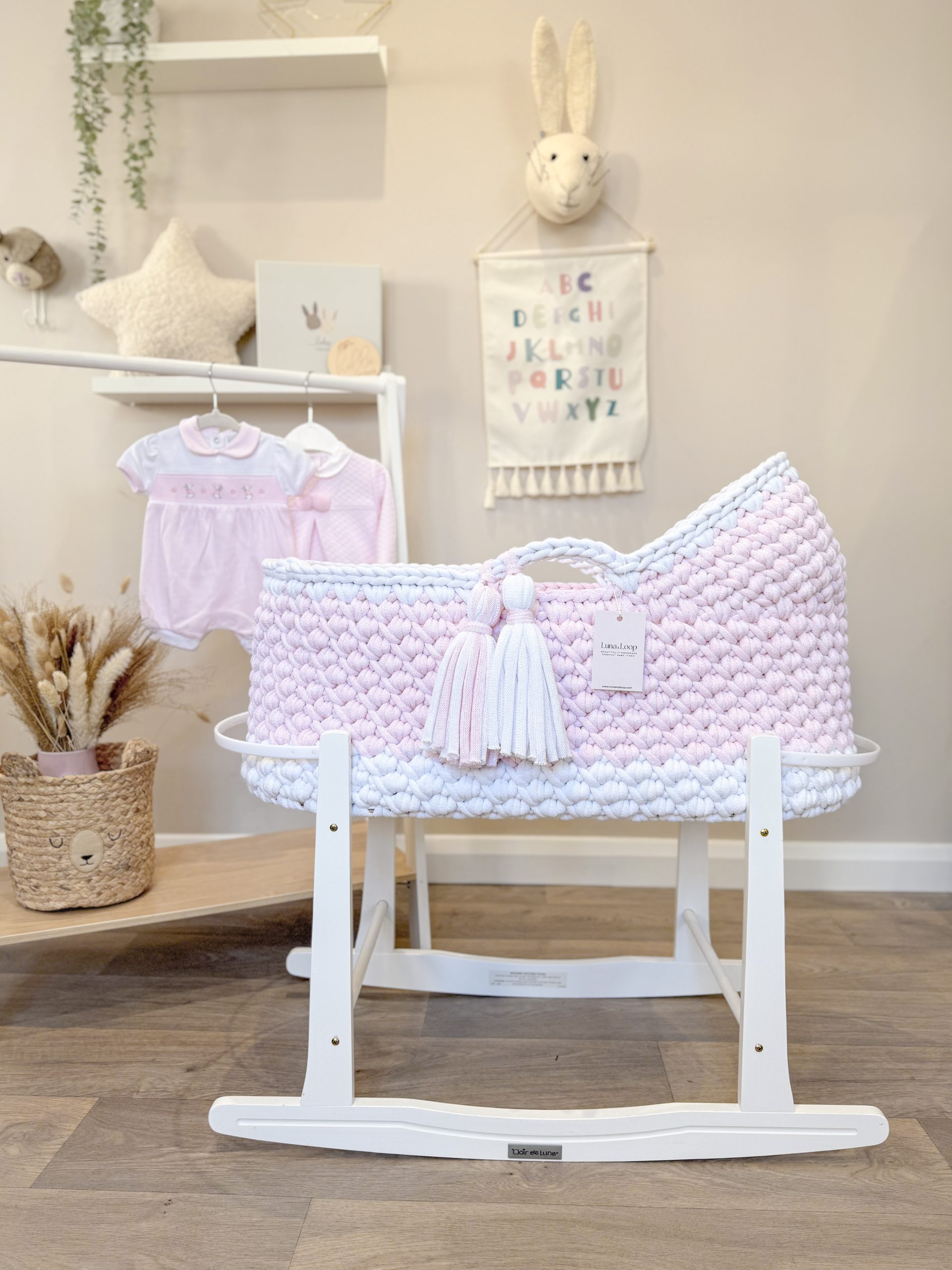 Each Moses basket is lovingly handmade, making every piece truly personal and unique. Whichever stitch you choose, you’re guaranteed both beauty and craftsmanship in every detail.