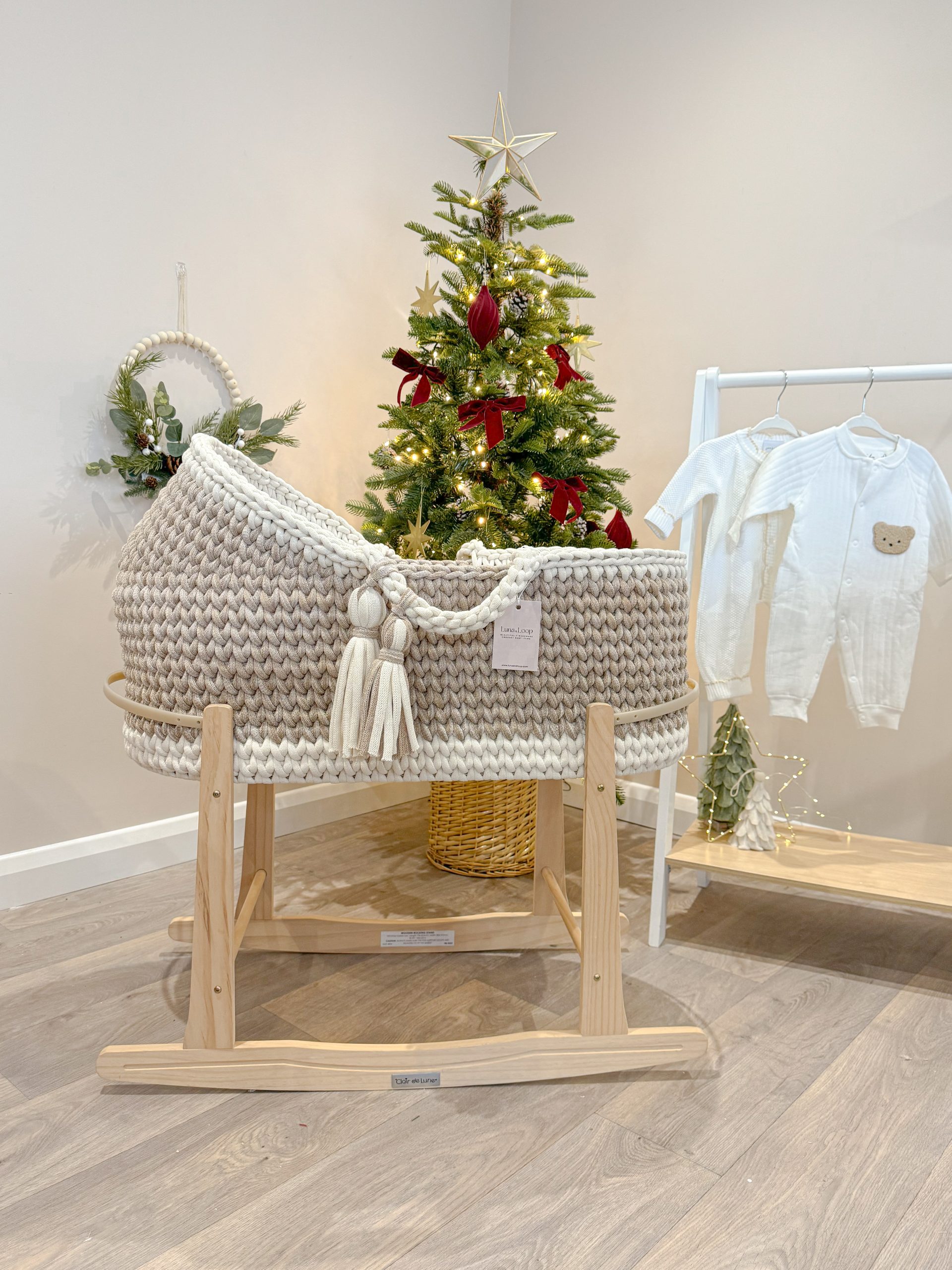 A stylish, sustainable alternative to mass-produced baby gear, this Moses basket is a warm, comforting space for those precious early moments. It’s the perfect choice for parents looking for ethical craftsmanship without compromising on charm or safety.
